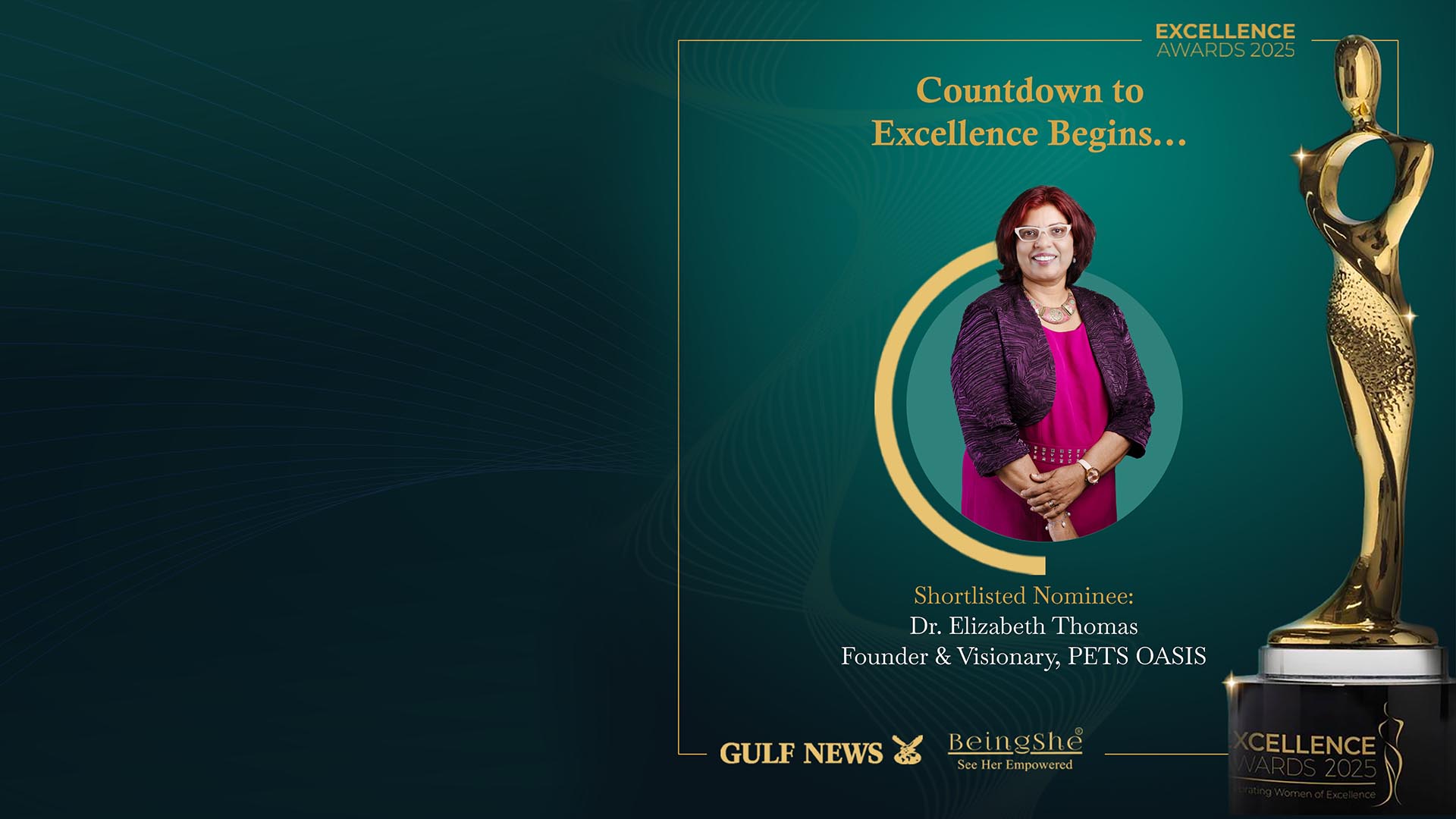We are honored to announce that our Founder & Visionary Dr. Elizabeth Thomas, has been shortlisted for the Excellence Award 2025 by Gulf News & BeingShe Excellence Awards. This recognition celebrates three decades of compassionate innovation in pet wellness.